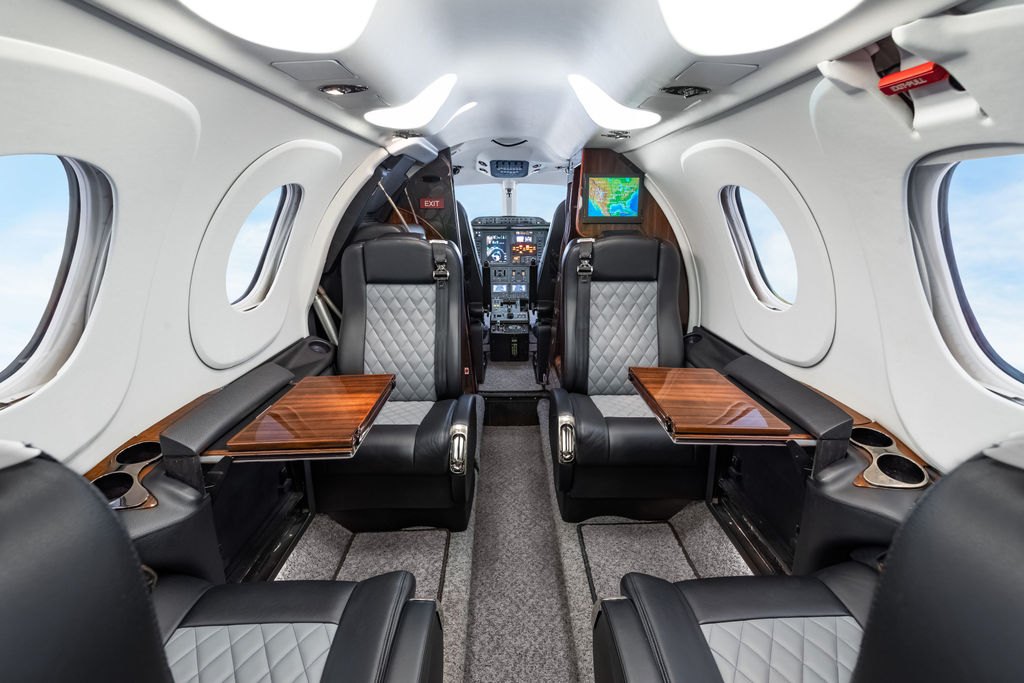 airframe with improved aerodynamics and fuel efficiency. Inside, the Premier boasts the largest cabin in its category, measuring 5’5″ high by 5’6″ wide,